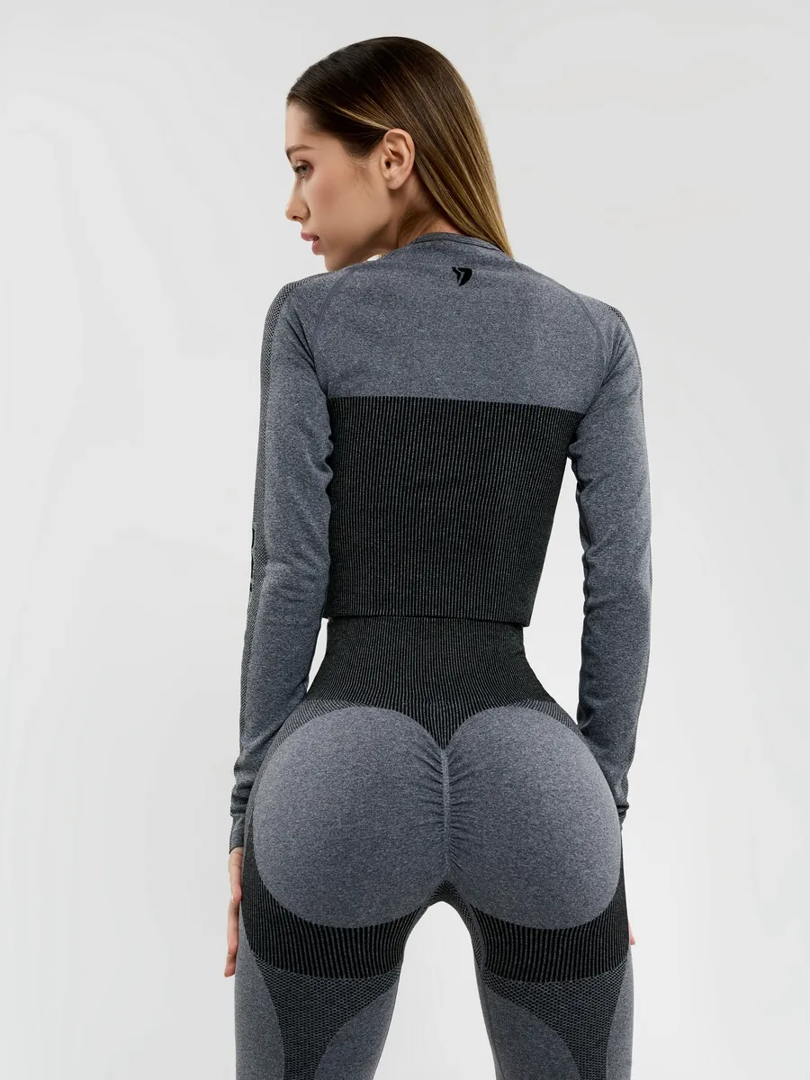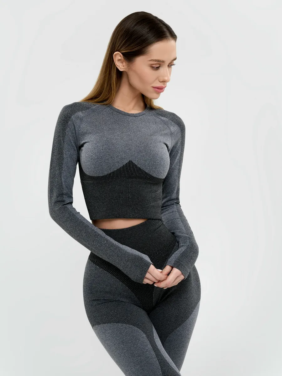 Укороченный бесшовный спортивный рашгард с длинным рукавом от Бона Файд - максимальный комфорт в тандеме с элегантностью. Облегает как вторая кожа и подчеркивает фигуру.