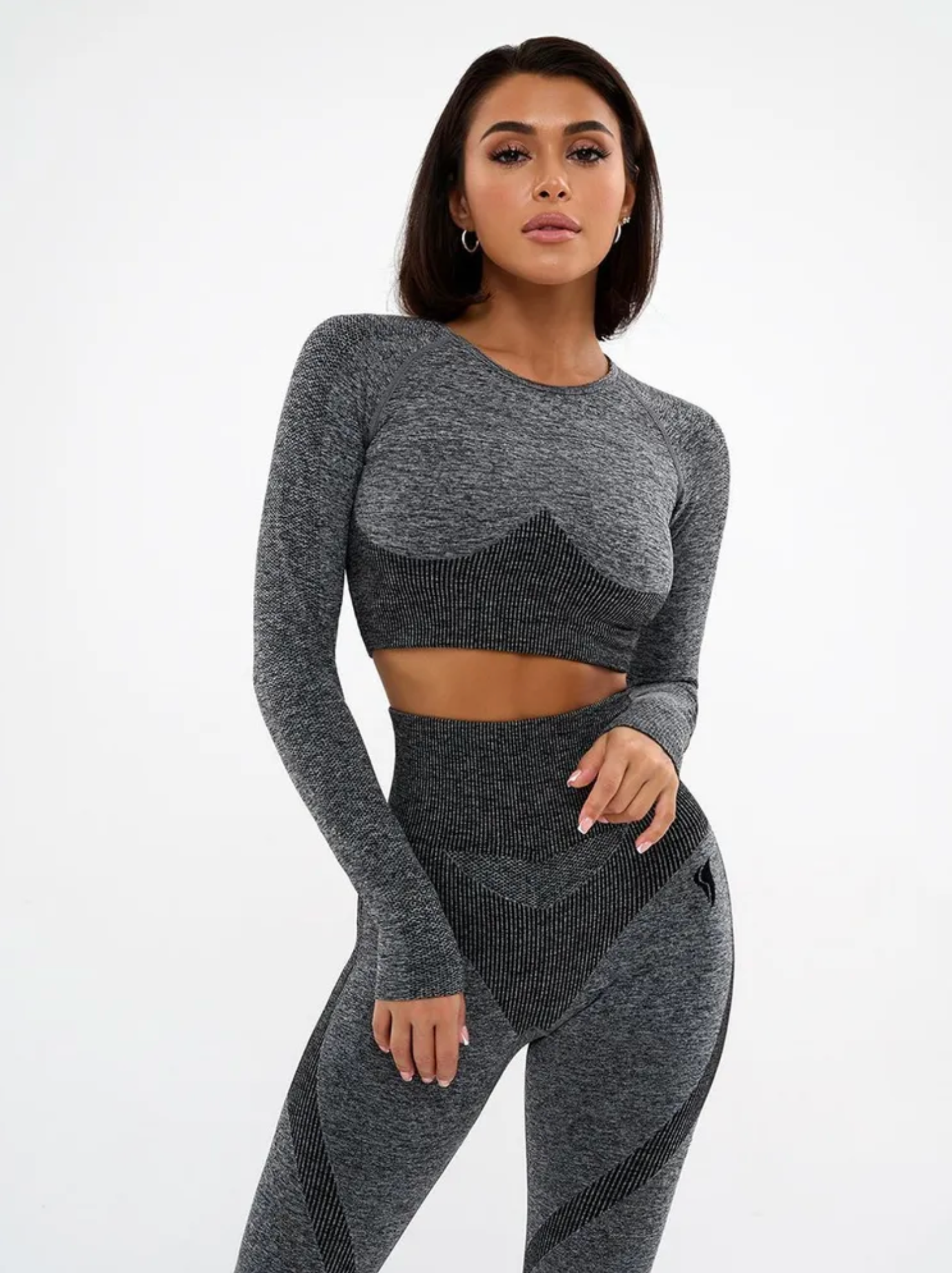Укороченный бесшовный спортивный рашгард с длинным рукавом от Бона Файд - максимальный комфорт в тандеме с элегантностью. Облегает как вторая кожа и подчеркивает фигуру.